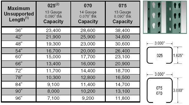 Specifications of Upright Frames